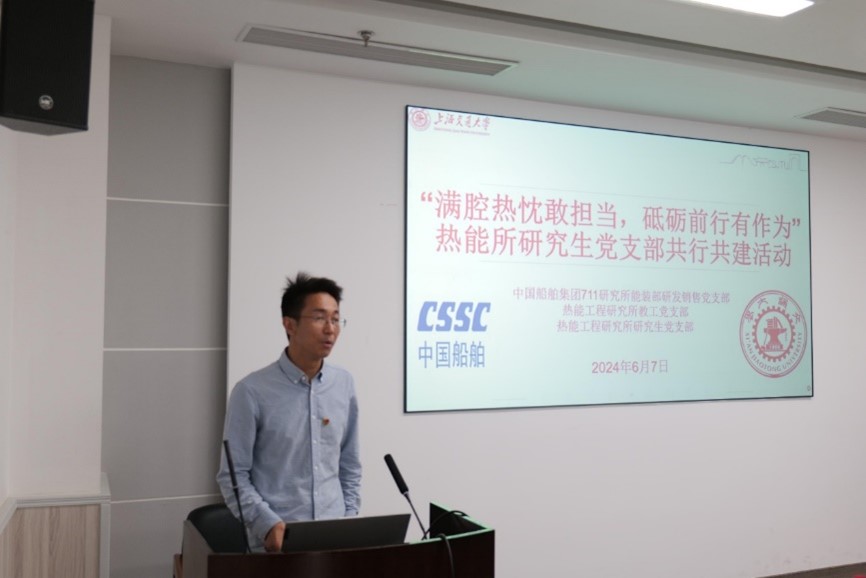 6月7日,热能工程研究所教工党支部、研究生党支部联合七一一所能装部研发销售党支部开展了“满腔热忱敢担当,砥砺前行有作为”的共行共建活动。七一一所能装部研发销售党支部、低温热党支部党员以及热能工程研究所师生党员参加了活动。