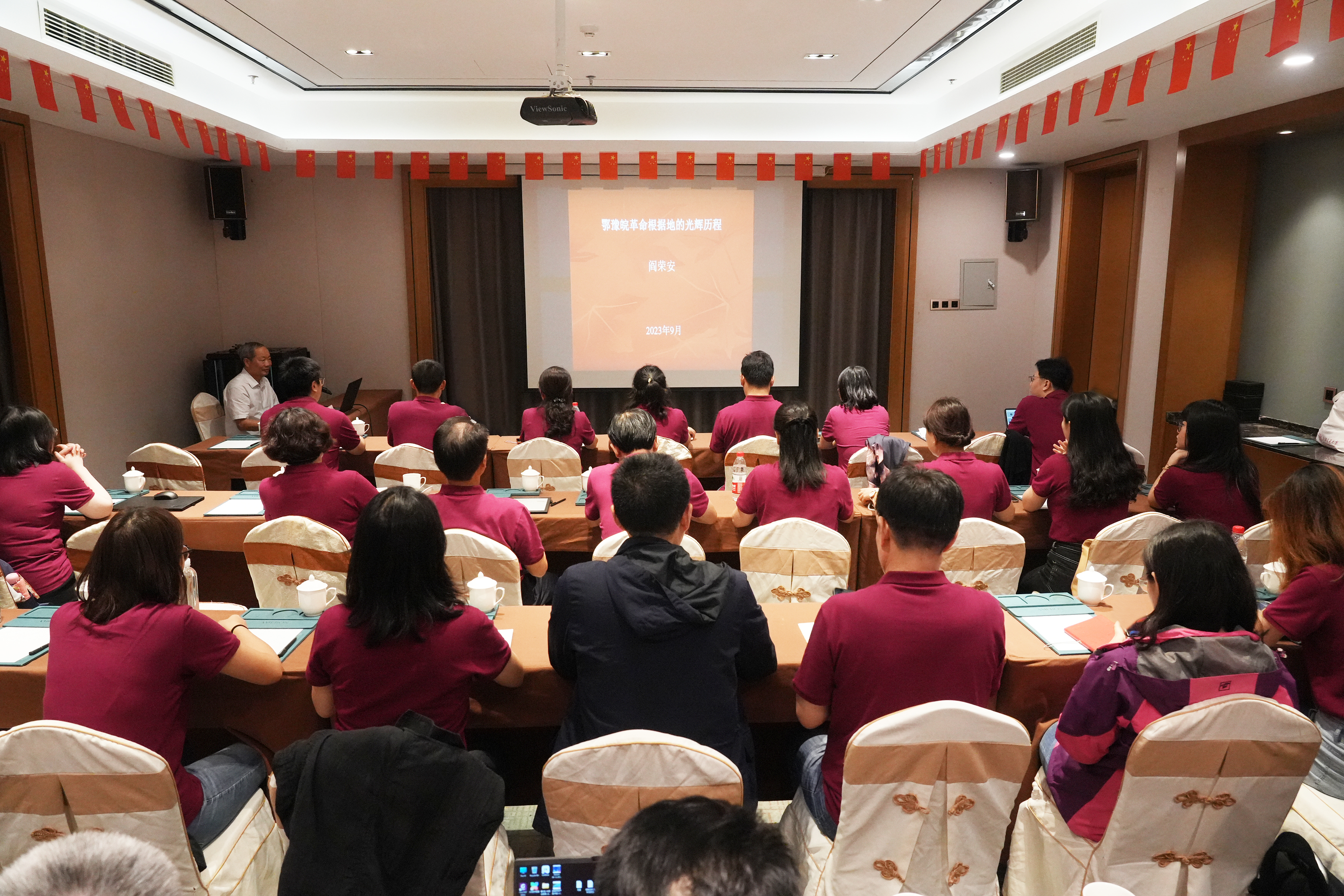 金寨红色历史研究会研究员、新四军历史研究会会长闫荣安教授作“鄂豫皖革命根据地的光辉历程”的主题报告。鄂豫皖根据地在中国共产党的领导下,点燃革命火种,诞生多支红军主力,经历了国内革命战争、土地革命、抗日战争、解放战争等各个时期的革命斗争活动,在极其艰苦的环境中,创造了28年红旗不倒的奇迹,家家有红军、村村有烈士,山山埋忠魂,岭岭皆丰碑,铸就了伟大的大别山精神。