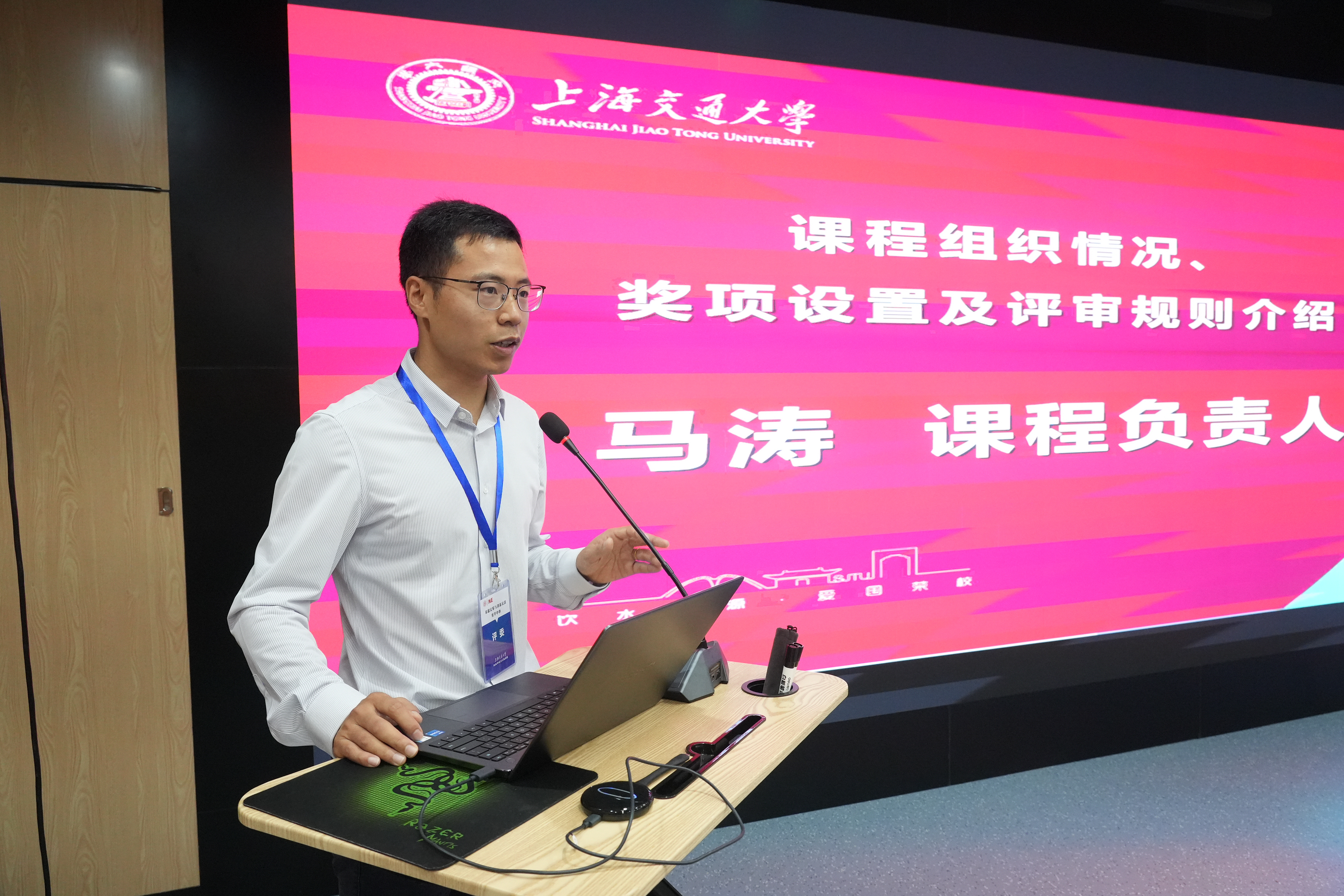 课程教研组负责人马涛介绍了课程组织情况和项目展安排。本次共有48个课程项目参展,按照“工业应用”、“智能产品”、“生活创意”和“便捷服务”四个主题分类,并设置一、二、三等奖以及“最佳技术奖”、“最佳创意奖”、“最具商业价值奖”和“最受欢迎奖”四类单项奖。