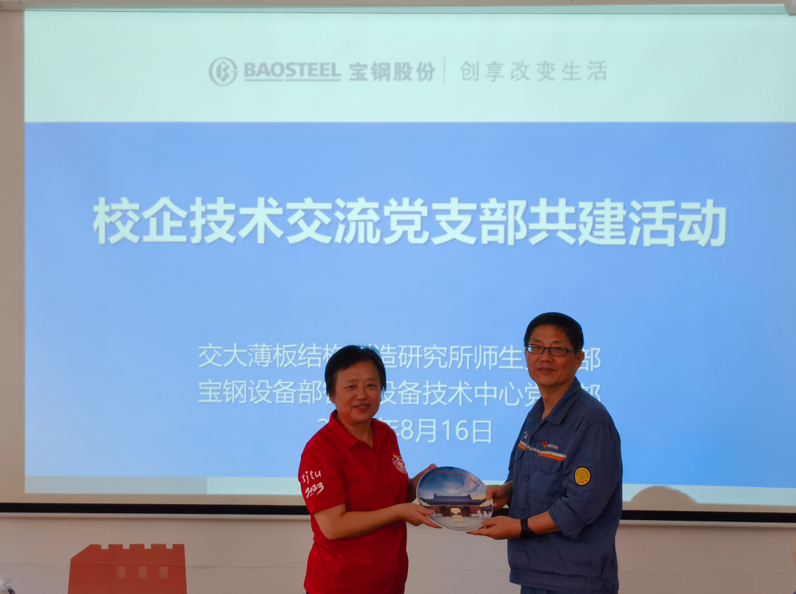 8月16日,伟德国际1946薄板结构制造研究所师生党支部前往宝山钢铁股份有限公司,与宝钢设备部智能设备技术中心党支部开展主题共建活动。宝钢设备部智能设备技术中心党支部书记郑剑云,中心主任刘俊岭、副主任傅小波,首席工程师廖礼宝,以及机械设备组技术人员,伟德国际1946薄板结构制造研究所教工党支部书记赵亦希,以及研究生党员等参加了活动。