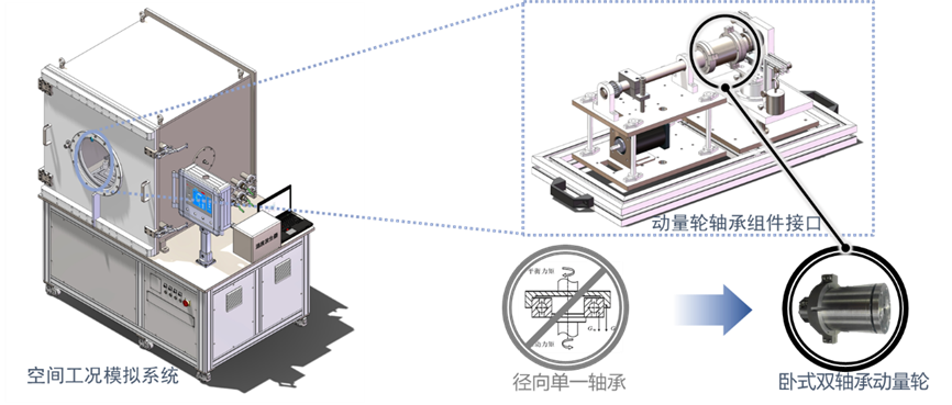 “空间动量轮轴承摩擦力矩试验机及其试验方法”专利原创性地提出“动量轮轴承组件专用接口+消除附加扭矩的径向载荷施加系统+径向和轴向载荷精准测量方案”的空间轴承组件摩擦力矩测试技术,解决了模拟空间环境和工况下的动量轮轴承组件摩擦力矩高精度实时测量难题。目前,该专利技术已应用于飞轮、控制力矩陀螺等主力空间姿控执行机构的研制,提升了测试覆盖水平,节约了测试周期和成本,支撑了多个重要产品交付和型号首飞任务。该专利技术系通用技术,可满足不同工况、不同领域轴承摩擦力矩测试需求,易拓展及实现系列化推广应用。