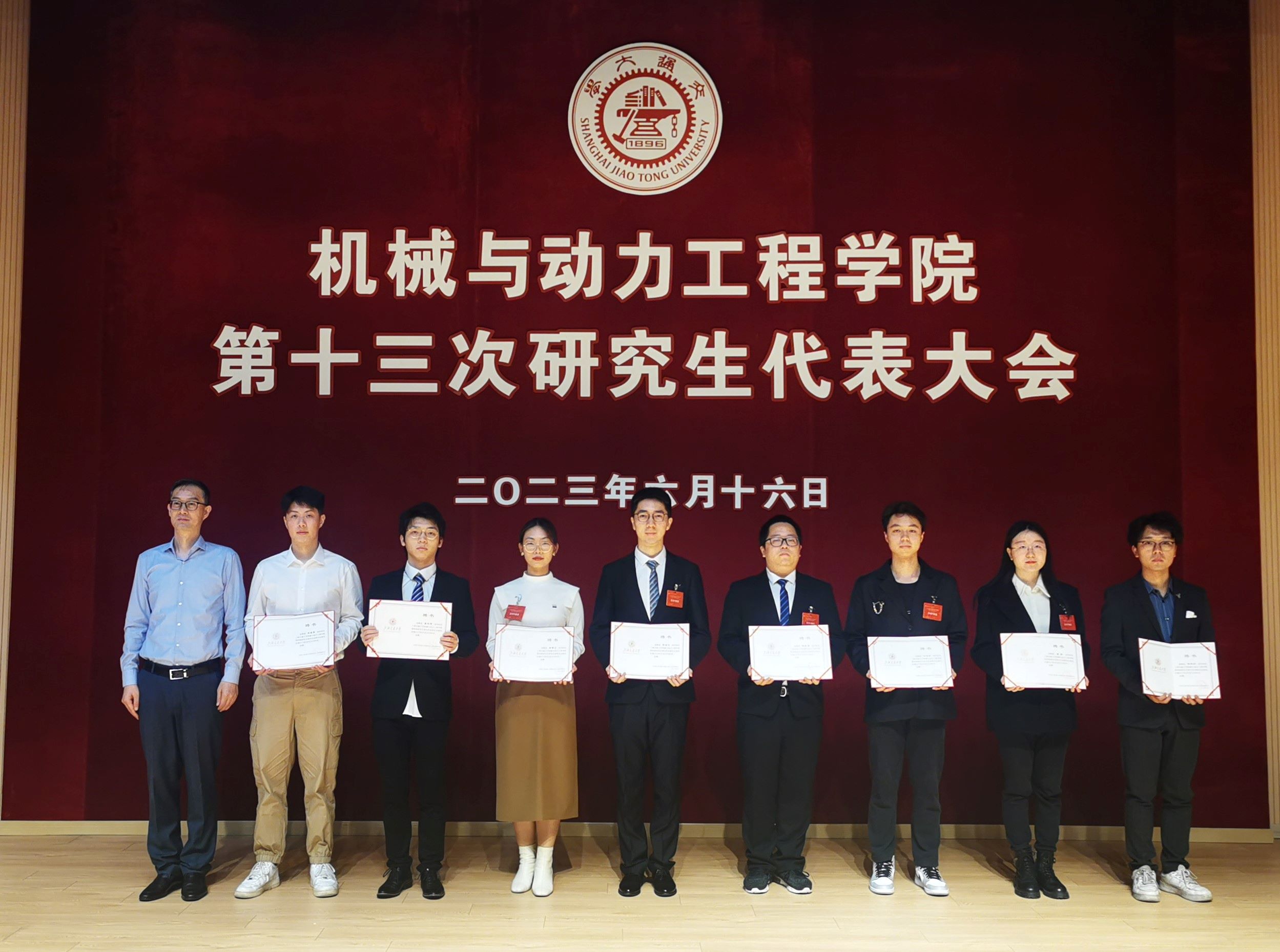 第十二届研究生会主席团成员吕潇峻宣读《公司第十三次研究生代表大会优秀提案代表名单》。张执南、李灿为方俊等20名优秀提案代表颁发证书。
