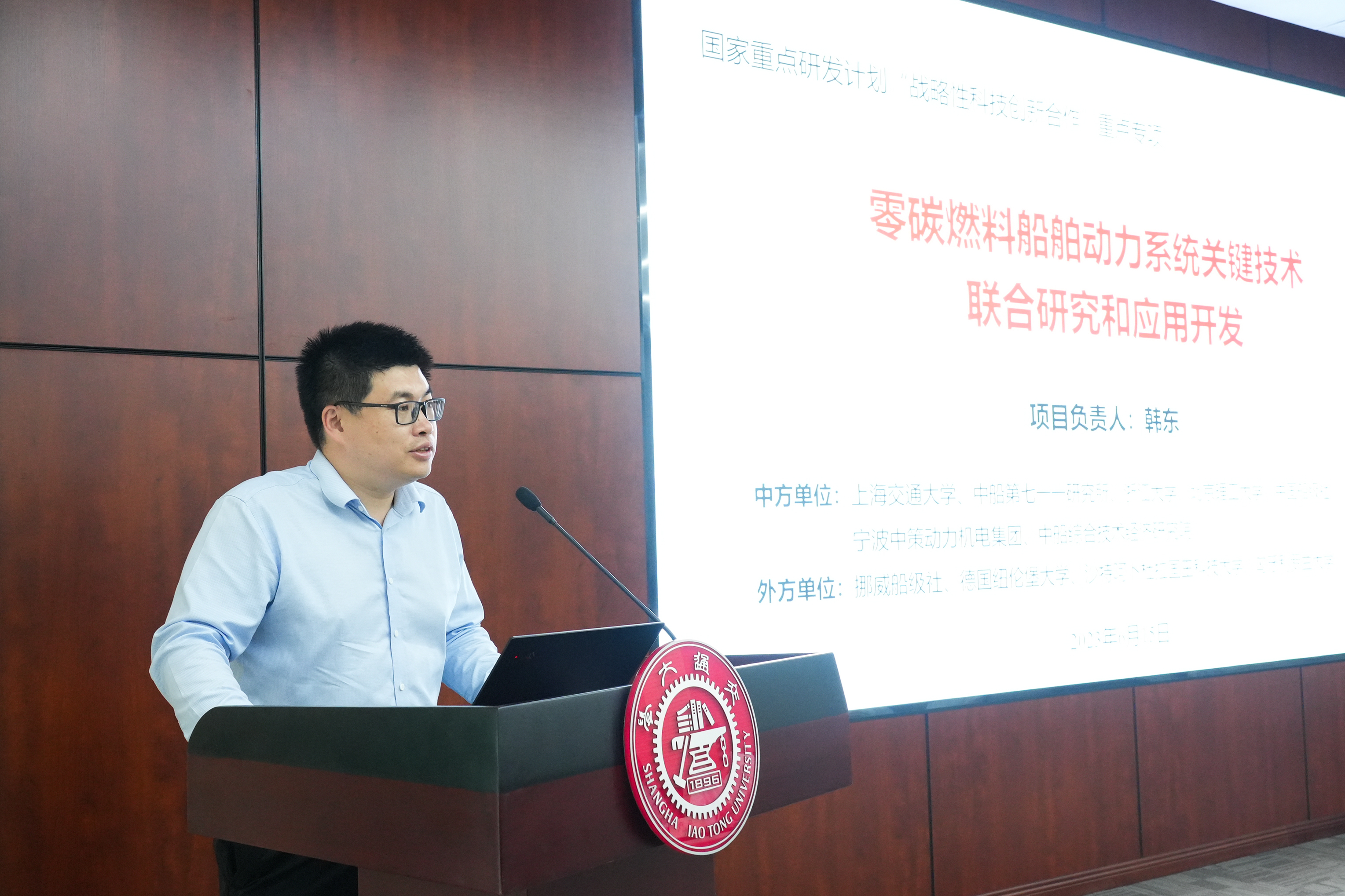 6月15日,伟德国际1946牵头承担的国家重点研发计划战略性科技创新合作重点专项“零碳燃料船舶动力系统关键技术联合研究和应用开发”项目启动会召开。上海市科学技术委员会国际合作处处长何晌艳、项目官员杨文展,项目咨询专家、交通运输部规划研究院副经理徐洪磊,哈尔滨船舶锅炉涡轮机研究所常山研究员,上海海事大学钟兢军教授,中国科公司城市环境研究所单文坡研究员,陕西柴油机重工有限公司张旭东研究员等出席。中国工程院院士、伟德国际1946黄震教授、伟德国际1946前沿创新研究院经理赵一新教授、伟德国际1946副经理瞿叶高教授、项目负责人韩东教授以及课题组骨干成员共30余位代表参加了启动会。启动会开幕式由赵一新主持。