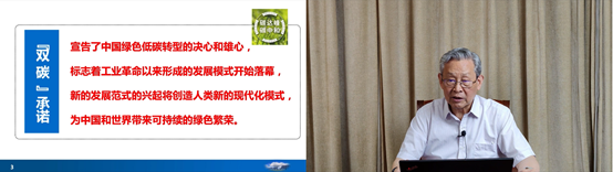 中国工程院院士、国家能源咨询专家委员会副主任杜祥琬做题为《对我国实现碳达峰碳中和战略及路径的思考》的主旨报告,指出我国自“双碳”目标提出以来,各项工作稳步推进,但仍面临减排幅度大、转型任务重、时间窗口紧的困难和挑战,为保障“双碳”目标如期实现,应坚定节能提效战略、能源安全战略、非化石能源替代战略、再电气化战略、资源循环利用战略、固碳战略、数字化战略与国际合作“八大战略”,以关键技术的重大突破支撑高质量可持续发展下的碳中和,在构建现代能源技术体系、规模化碳移除以及健全绿色低碳科技创新体系等领域发力。