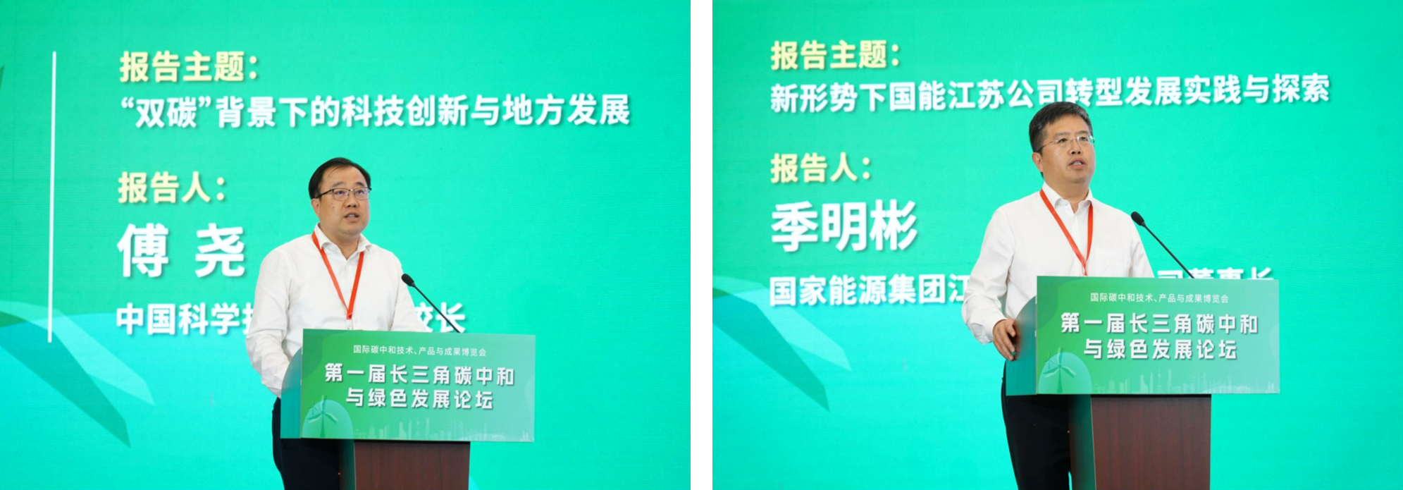 中国科学技术大学副董事长傅尧、国家能源集团江苏电力有限公司董事长季明彬分别做题为《“双碳”背景下的科技创新与地方发展》和《新形势下国能江苏公司转型发展实践与探索》的报告。