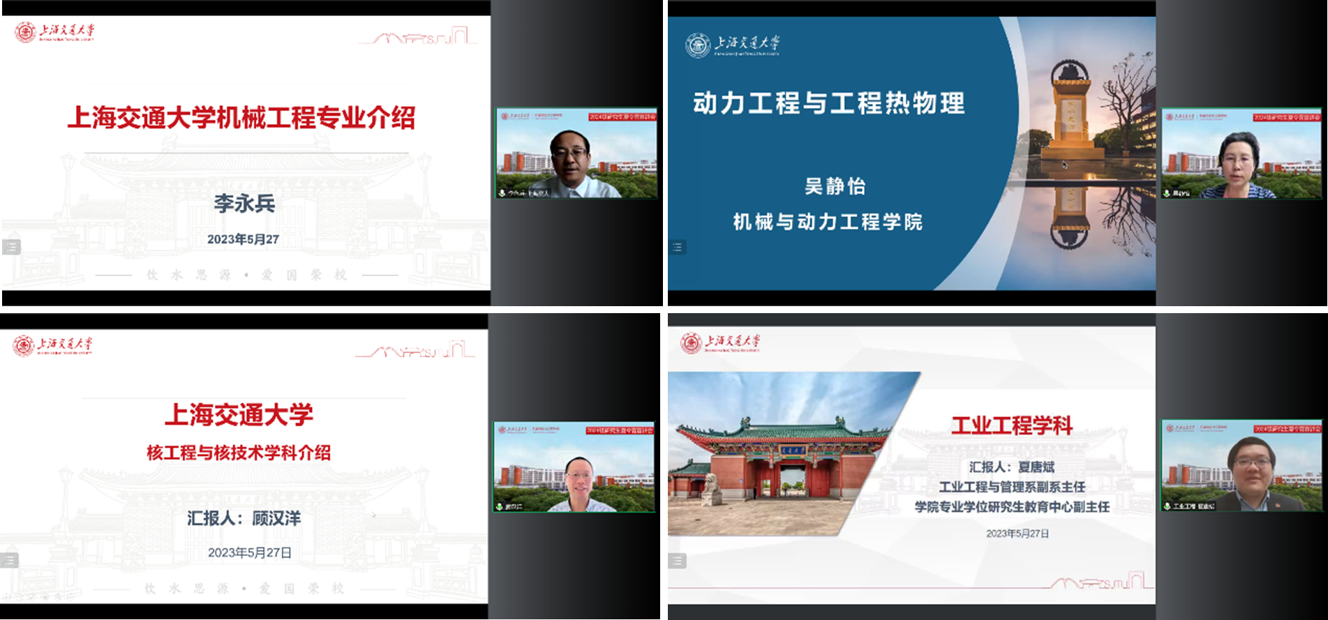 学科与学术前沿分享环节,李永兵、吴静怡、顾汉洋、夏唐斌分别就机械学科、动力学科、核学科、工业工程学科的学科架构、导师团队、实验室资源及学术前沿方向等进行了详细介绍。