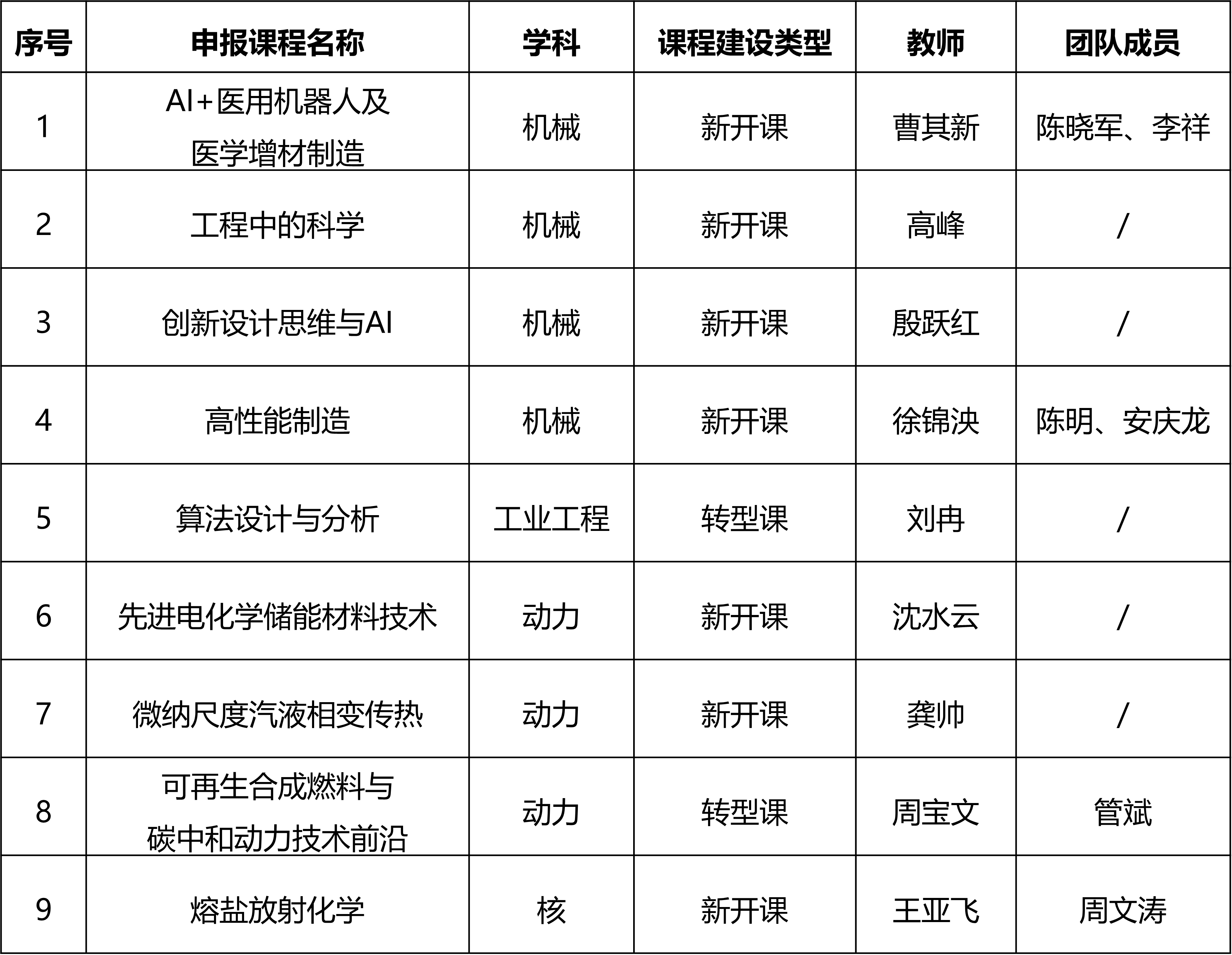 附:研究生专业前沿课程建设项目(暨院级未来技术课程培育项目)三期立项课程一览表