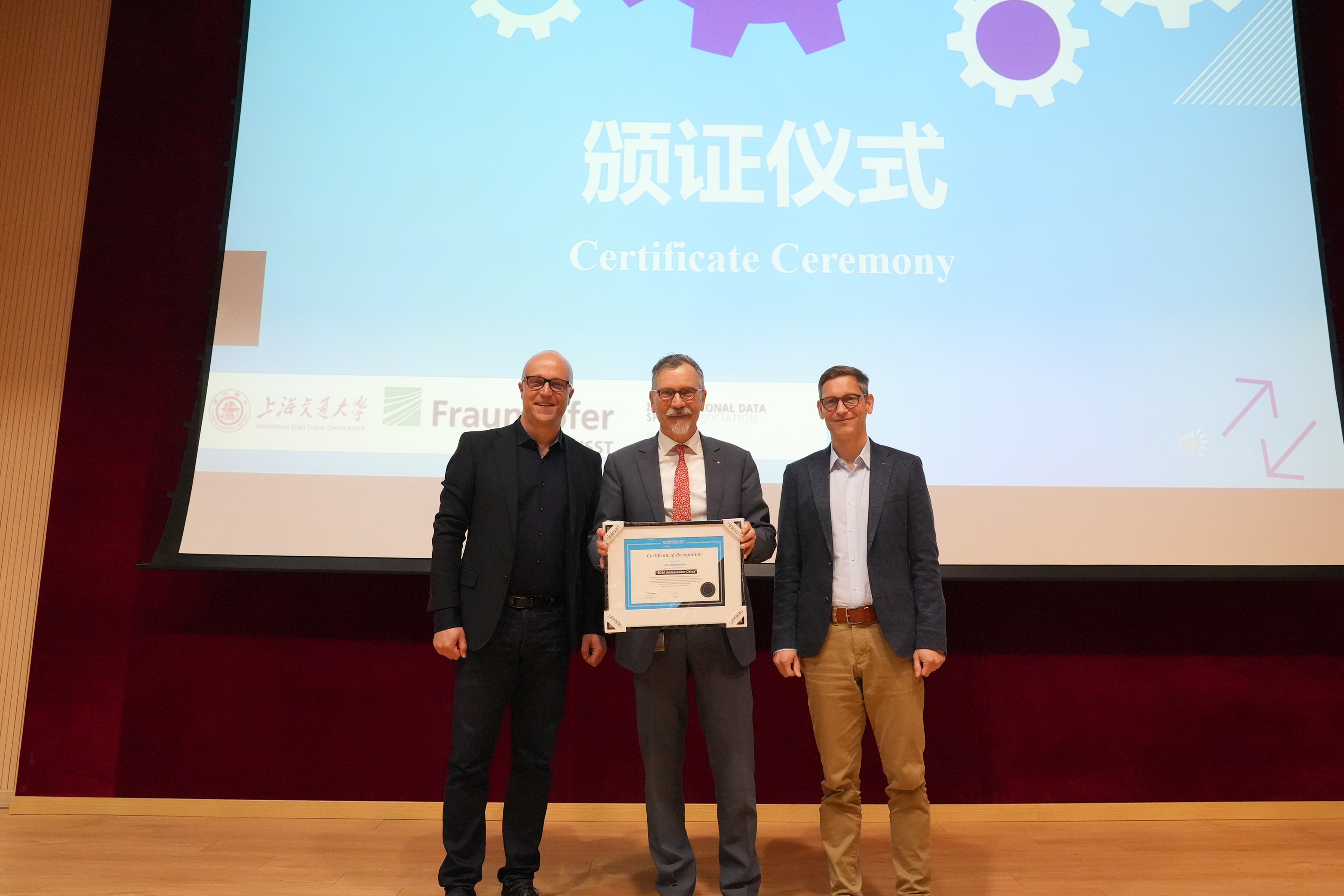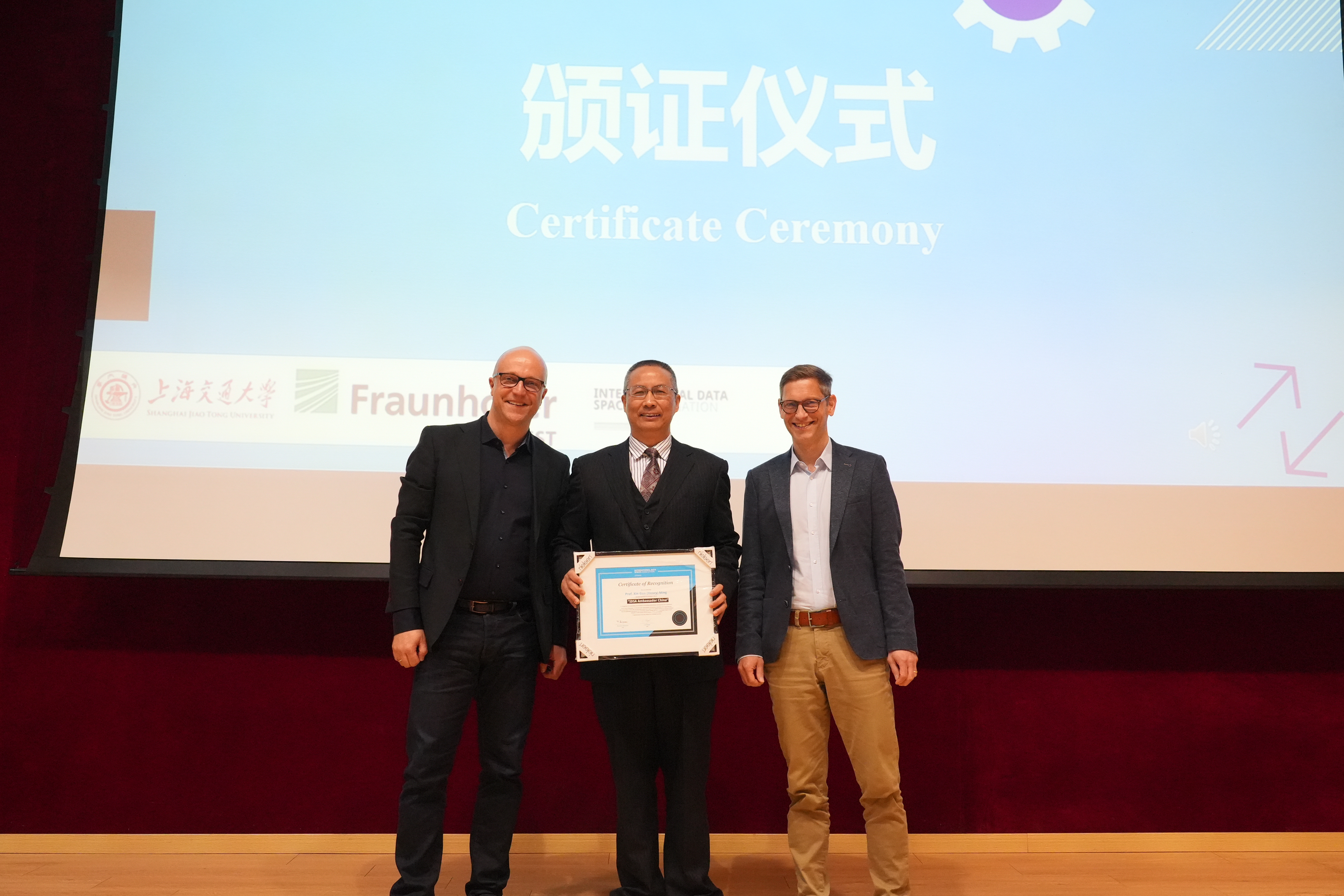 Thorsten Hülsmann代表IDSA为明新国、Lars Bäumann、澳门科技大学助理教授刘帅颁发“IDS ambassador China”荣誉证书,感谢大家在推动国际数据空间与中欧合作方面做出的贡献。