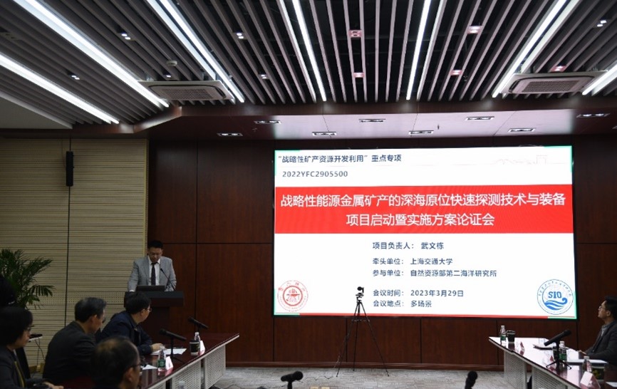 实施方案论证会上,武文栋副教授就项目的总体情况、实施方案与管理工作进行了汇报,与会专家分别就项目实施过程中的核心关键技术、勘探装备的稳定可靠性、装备对实际深海探测环境适应性、项目推进管理方案的落实等方面提出了建设性的指导意见。