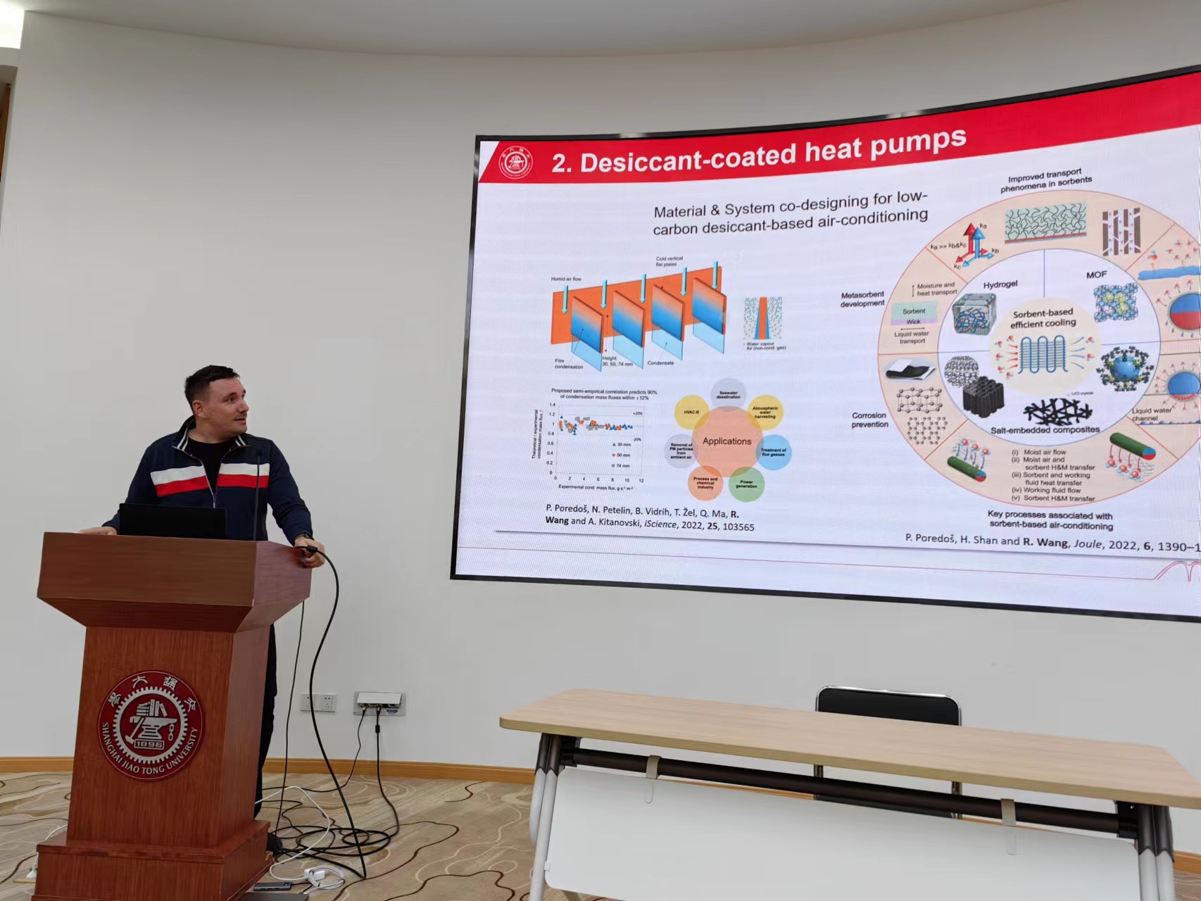 Primož Poredoš围绕“在空气-水-能源关系中针对材料和系统的联合优化设计”,分享了海水淡化、除湿热泵、辐射制冷驱动的连续吸附式空气取水和辐射天空制冷聚热等方向的研究成果,以及来中国留学工作的经历。