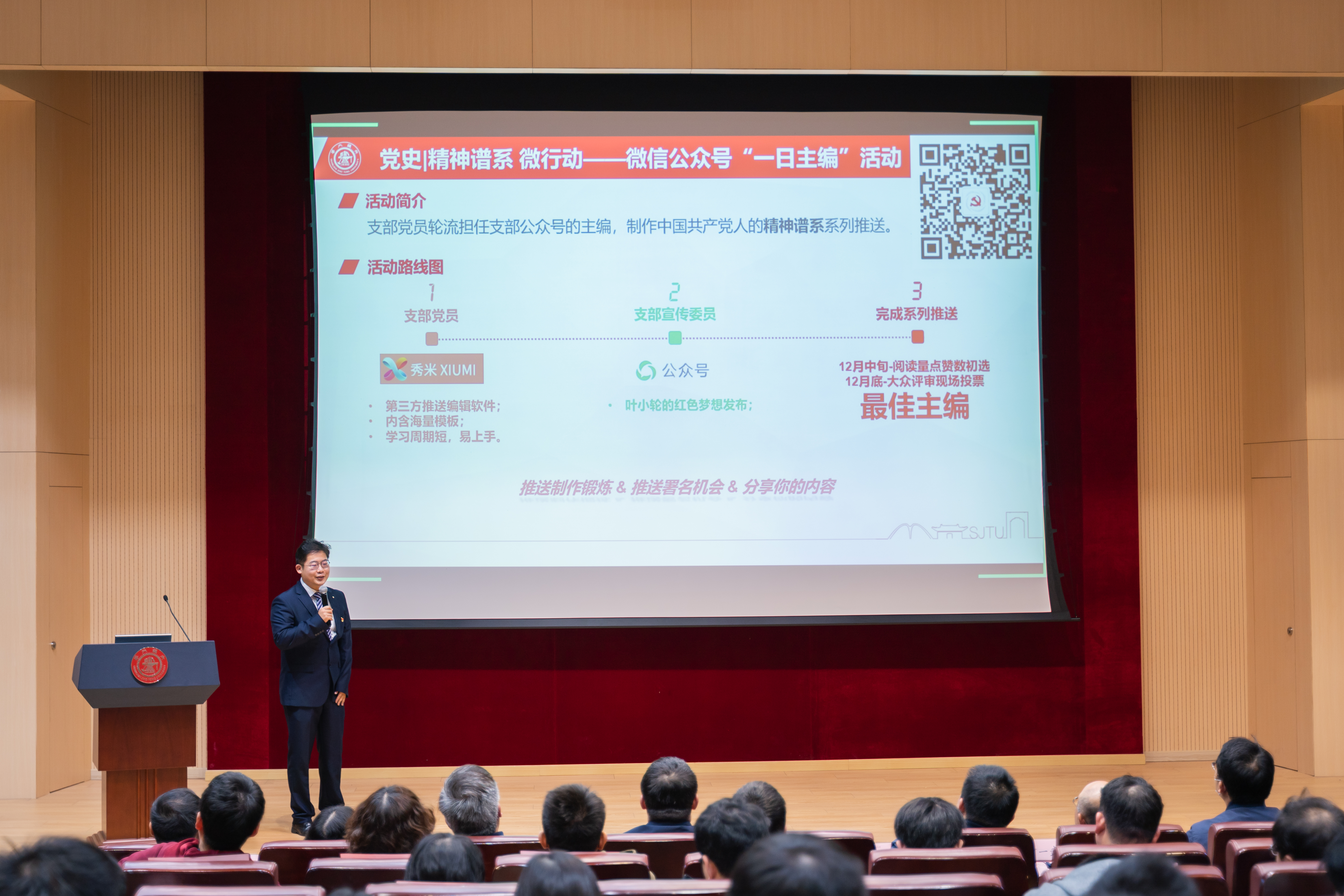 叶轮机械研究所硕士生党支部书记史挺介绍了“中国共产党人的精神谱系微行动——微信公众号‘一日主编’”活动,号召大家积极参与,弘扬光荣传统,赓续红色血脉,传承伟大建党精神。