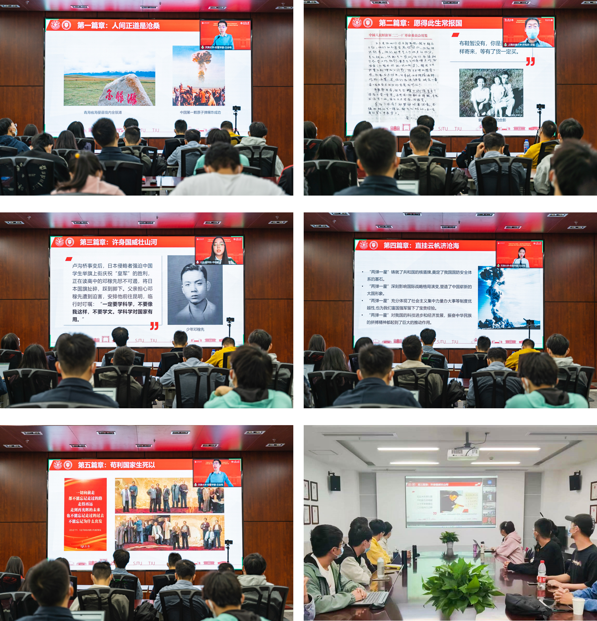 本次活动以解读“两弹一星”精神的形式,带领师生深入学习党的二十大报告中习近平总书记关于青年工作的重要论述。大家一致表示要进一步坚定理想信念、练就过硬本领、勇于创新创造、矢志艰苦奋斗、锤炼高尚品格,在“两弹一星”精神继承弘扬的生动实践中放飞青春梦想。