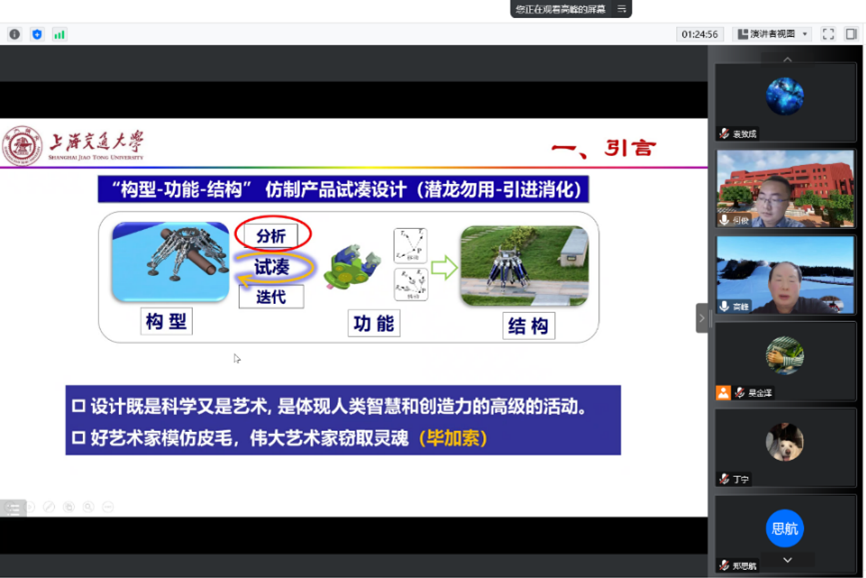蒋丹、于随然、赵现朝、齐臣坤、高红、陈卫星、李威、何俊等教师介绍了其研究方向和课题,并结合自身科研经历鼓励员工们不畏困难、勇于探索,努力成为国家栋梁之才。2022级直博生沈显星表示将不负韶华、奋勇前行,努力为我国的高端装备创新设计贡献力量;2021级博士生杨利民分享了科研和学习生活方面的经验;思政教师郑思航对校园防疫政策进行了说明,要求大家遵守防疫规定,注意个人防护。
