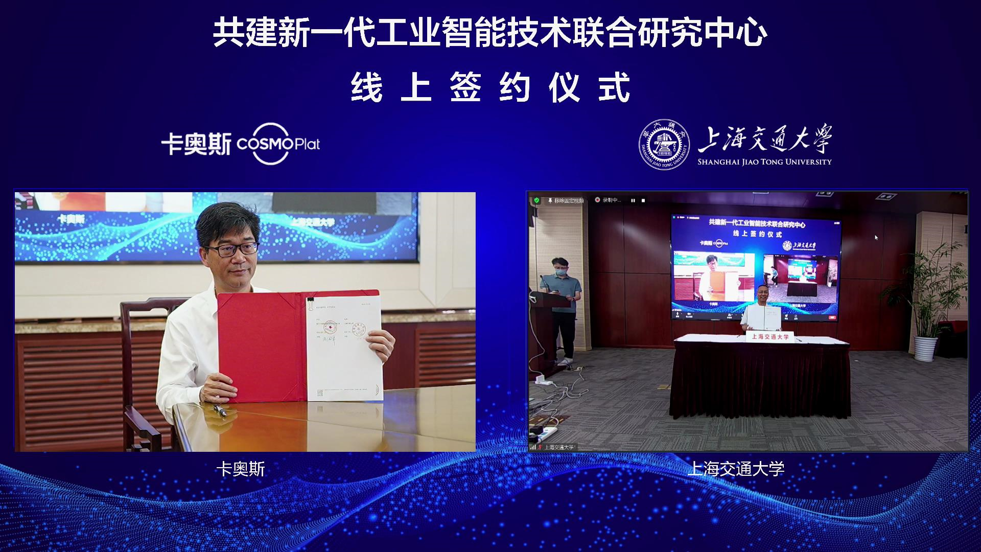 明新国与盛国军签署“新一代工业智能技术联合研究中心”合作框架协议,朱磊与盛国军为“新一代工业智能技术联合研究中心”线上揭牌。