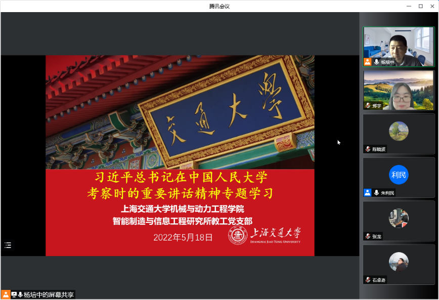 5月18日,智能制造与信息工程研究所教工党支部召开线上主题党日活动,学习贯彻习近平总书记在中国人民大学考察时的重要讲话精神。