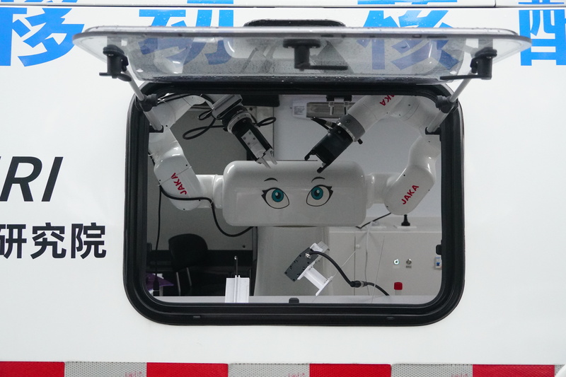 在市经信委的指导下,上海人工智能研究院智慧医疗中心首席科学家、伟德国际1946副研究员闫维新与节卡机器人技术团队合作,在很短时间内研制出双臂机器人及其配套设备。“我们用的机械臂是节卡MiniCobo协作机器人,电爪是从公司展厅的机器人身上拆下来的。其他设备大多是3D打印出来的,等完全复工后,我们再开模具、做机械加工。”闫维新指着核酸采样车内的机器人说。