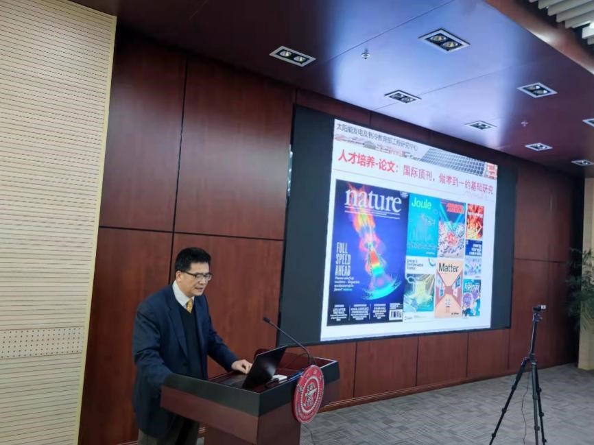 王如竹围绕总体概况、成果转化与行业贡献、基地建设与人才培养、基地交流和运行管理等五个方面作了2021年度中心工作报告及2022年发展规划。李廷贤教授、葛天舒教授和马涛副教授分别作了“除湿换热器分析及其应用”、“高密度储热及能质调控”、“用于建筑集成的高效彩色光伏技术”主题报告,对目前研究进展进行了汇报。