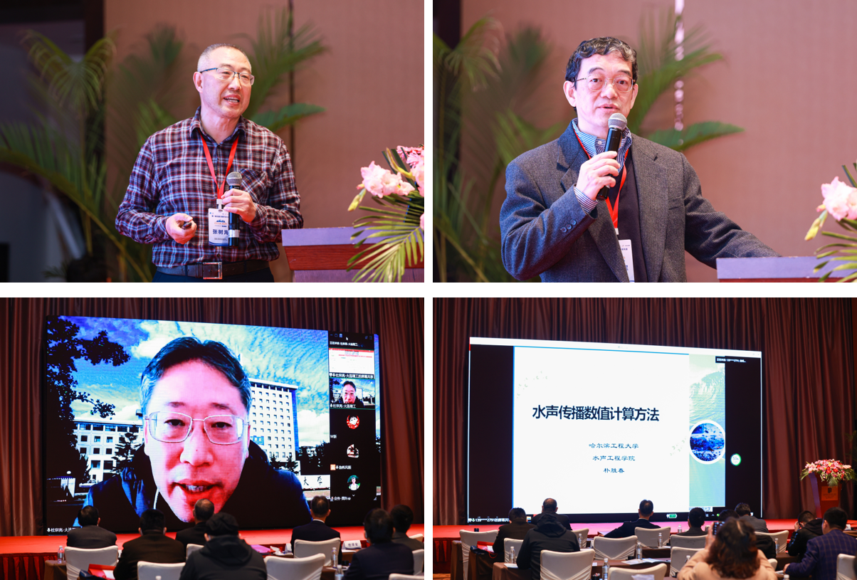 中国空气动力研究与发展中心张树海研究员、南方科技大学刘轶军教授、大连理工大学郭旭教授、哈尔滨工程大学朴胜春教授分别作“激波噪声数值模拟研究”、“声学边界元方法发展的回顾与现状”、“拓扑优化及其在结构振动响应控制中的应用”、“水声传播数值计算方法”的主旨报告,报告吸引了3500余人在线聆听。