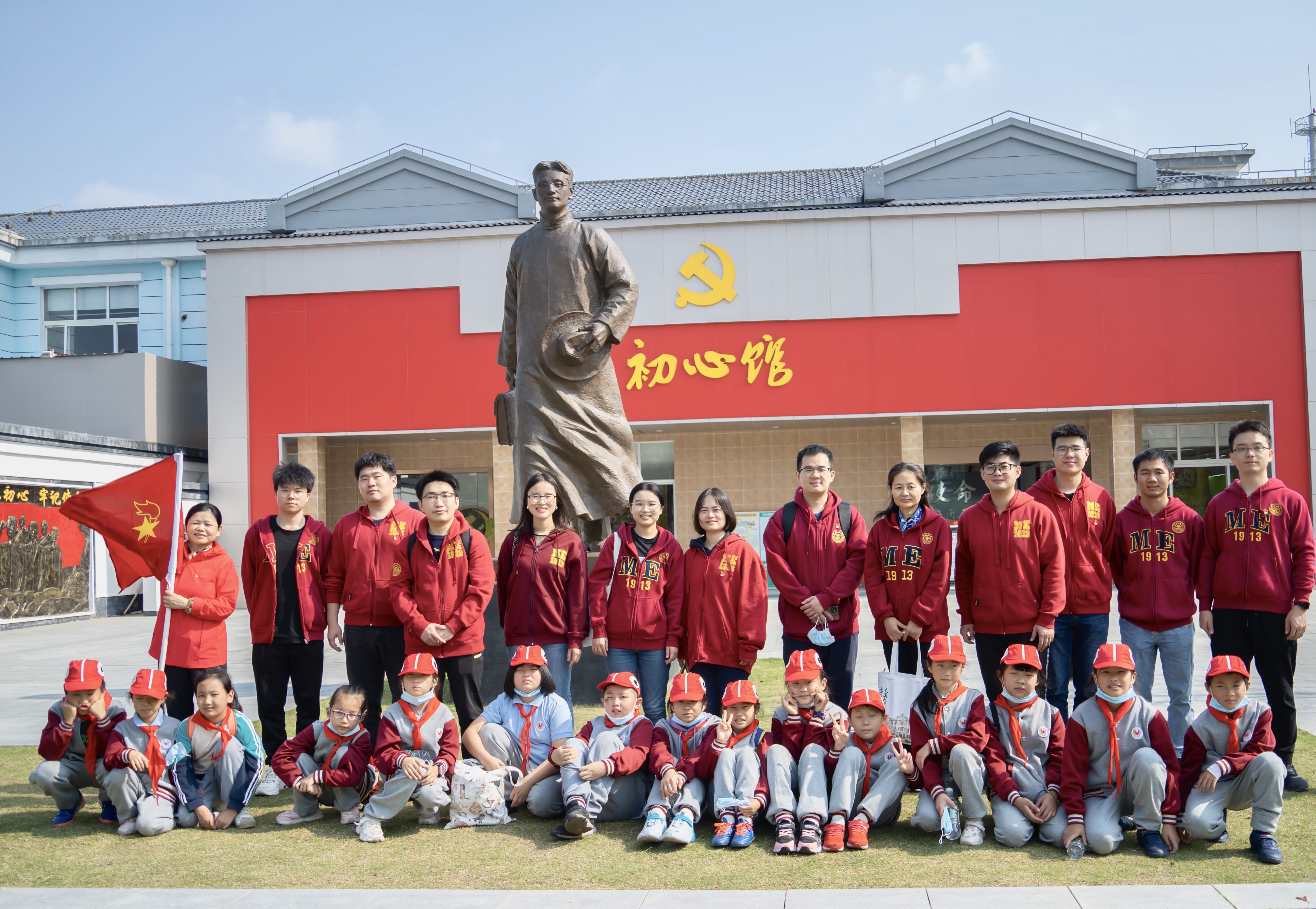 支部成员和亭林小学少先队员共赴金山卫抗战遗址纪念园、红色教育基地——初心馆,联合开展学习。1937年11月5日,侵华日军在杭州湾北岸的金山卫沿海偷袭登陆,作为自古中国抵抗外敌入侵的军事重镇,金山卫的抗战,始终是中国人民抗日战争史上的重大事件,深刻影响了二战时期中华民族的抗战格局。大家认真学习了金山党组织的发展与斗争,以及金山区共产党组织的创建人李一谔的革命经历,表示应弘扬革命烈士的英雄精神,学好党史,牢记初心,坚定理想信念,在新时代抒写新篇章。