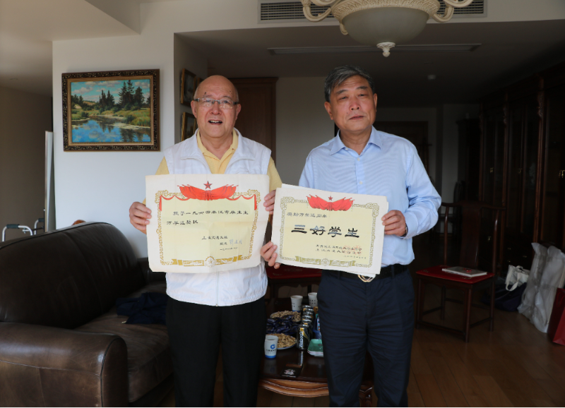 交谈期间,张安胜将万学长于1964年获评“优秀毕业生”鉴定表的复制件赠予学长,万学长非常高兴收到母校这样一份精心准备的珍贵礼物,并以珍藏多年的“优秀毕业生”奖状回赠母校。随后,万学长热情地展示了多年以来的日记,这也是他在母校学习期间养成的终身受益的习惯。