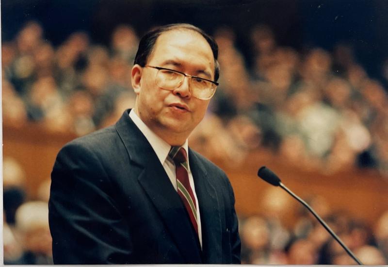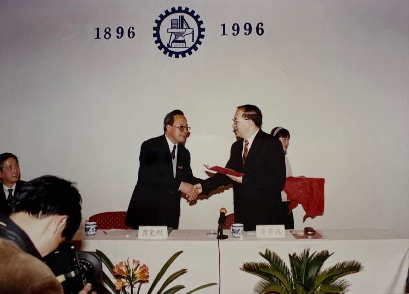 1996年,母校百年校庆,万学远员工作为员工代表发言