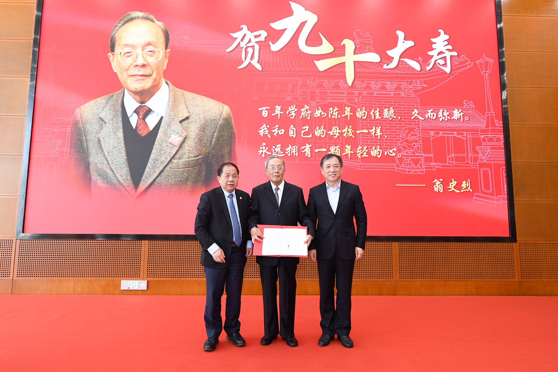 “百年学府如陈年佳酿,久而弥新。我和母校一样,永远拥有一颗年轻的心。”翁史烈对大家的关心和祝福表示衷心感谢,他回顾了自己从1949年进入交大72年来感受到的深刻变化,对公司在党的教育方针指引下取得的辉煌成绩表示高兴和自豪,对公司办学空间、学科体系、师生精神状态的巨大变化深感欣慰,并期待公司勇立潮头、为一流大学群体建设、为国家高质量教育体系建设作出新的重要贡献。