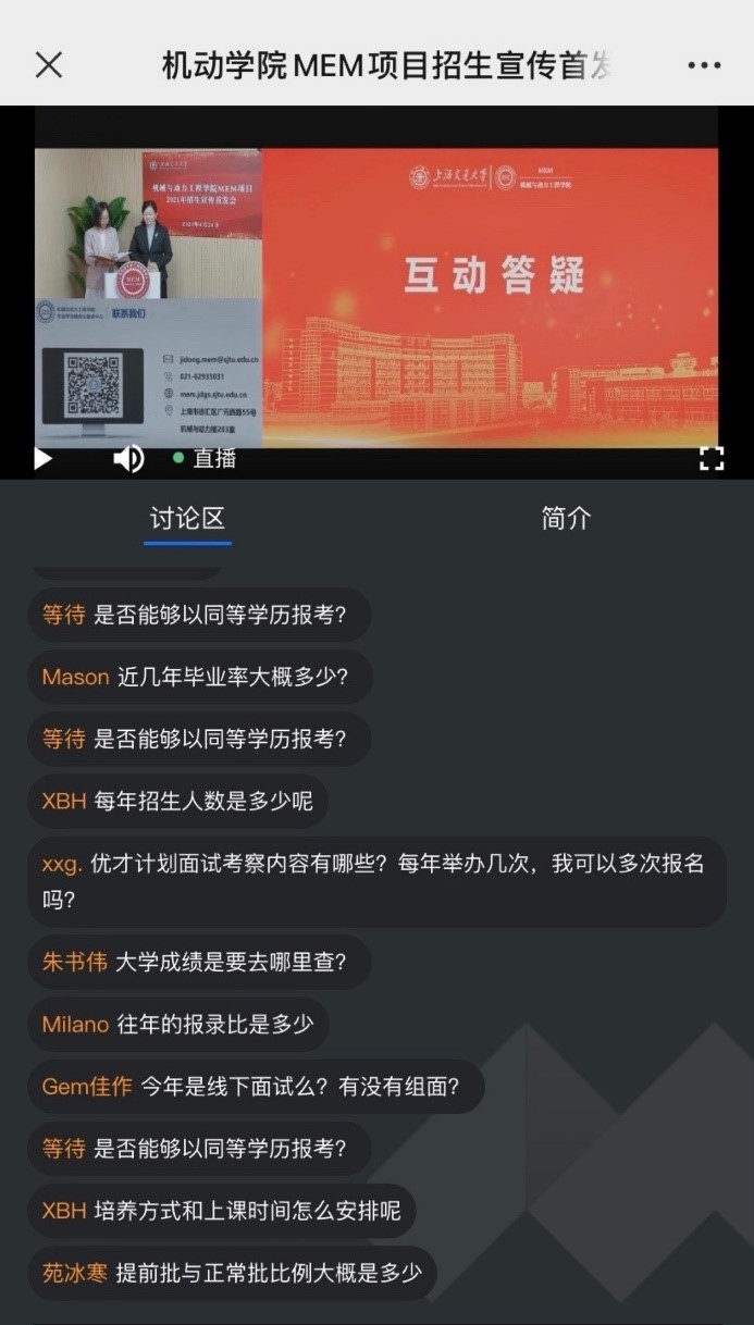 4月24日,伟德国际1946MEM项目2021年招生宣传首发会成功举办,这是公司专业学位研究生教育中心首次采用线上平台直播的方式进行招生宣讲,活动吸引了300余人报名。公司党委书记杜朝辉、党委副书记胡永祥、工业工程与管理系主任潘尔顺、专业学位研究生教育中心主任蔡小春等与广大考生齐聚云端。