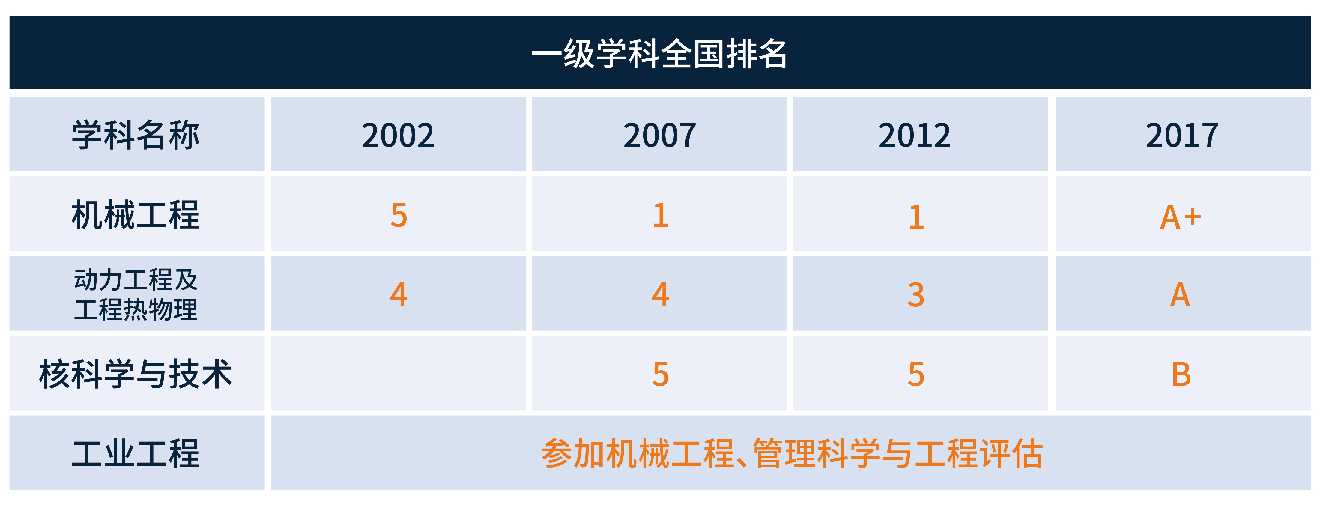 伟德国际1946拥有机械工程、动力工程及工程热物理、核科学与技术三个一级学科,团队建设整体处于国内领先地位。在教育部的全国一级学科评估中,机械工程学科连续三次位居全国一级学科评估之首,动力工程及工程热物理学科位列A档。