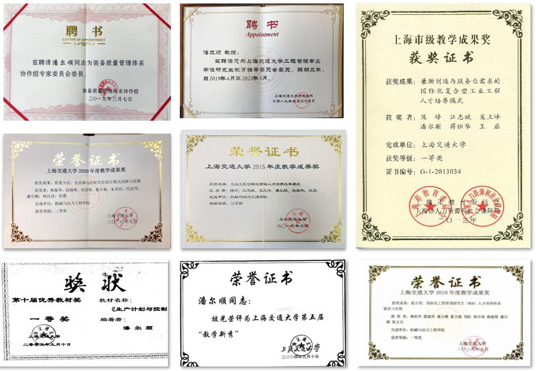 “爱岗敬业,教书育人,为人师表,诲人不倦。”潘尔顺不仅是质量为先的科研人,更是一位精益求精的教书匠。他是上海市重点课程《可靠性与维修管理》负责人、工业工程国家级教学团队的骨干,也是国家精品开放课程《工业工程导论》的主讲人之一,讲授的课程深受同学们的喜爱,获得评教最高等级。