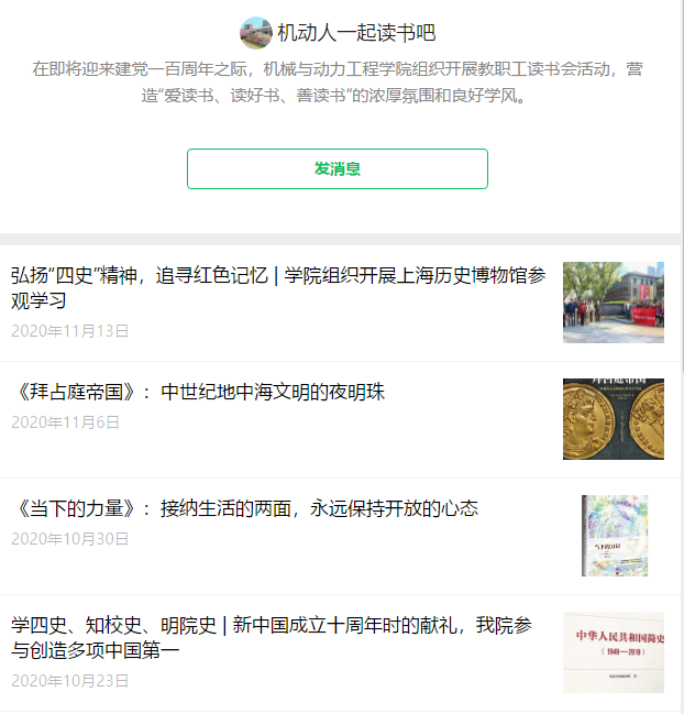 习近平总书记强调,要提倡多读书,建设书香社会,不断提升人民思想境界、增强人民精神力量。读书会活动开展以来,公司教职工积极推荐阅读书目,汇聚好书百余本,涵盖“四史”学习、人物传记、教育管理、自然科学、抗疫、养生等领域,共同营造“爱读书、读好书、善读书”的“全民悦读”新风尚。为确保读书会活动取得实效,7月初,公司开设了“机动人一起读书吧”微信公众平台,每周分享书籍推介、阅读心得等内容,并特别推出“学四史、知校史、明院史”栏目,从历史中汲取精神力量、经验智慧,加强线上互动交流。此外,公司及各研究所(系)还开展了亲子阅读、经典朗读等交流活动,丰富内涵,创新形式,分享见解感悟,巩固读书成效。