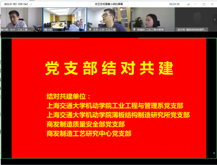 5月28日,公司工业工程与管理系党支部、薄板结构制造研究所党支部与中国航发商用航空发动机有限责任公司(以下简称“中国航发商发”)制造质量安全部党支部、工艺研究中心党支部,线上开展2+2党支部联合结对共建活动。会议由工业工程与管理系主任潘尔顺教授主持。
