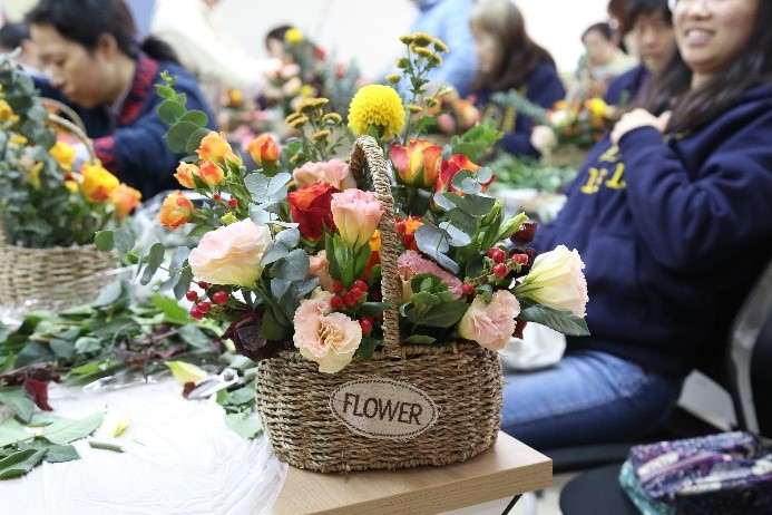 11月25日,伟德国际1946工会举办“花样年华”插花活动,吸引了全院80余名教职工参加。大家一同学习插花艺术,品味花海世界的美好生活。