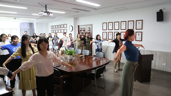 礼仪文化蕴藏着积淀深厚的文化内涵,培训师汪兰带领大家做形体操热身运动。她讲解了交谈、坐姿、拜访、人际交往、仪容仪态等职业礼仪规范和注意事项,介绍了职业服装色彩搭配等内容。与会者仔细聆听,现场互动交流,气氛热烈活跃,表示要以积极向上的精神风貌投身到教学、管理工作当中。