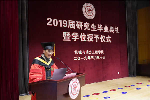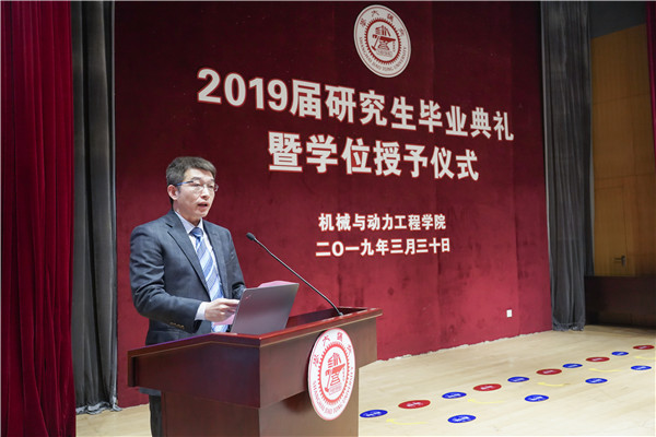 杜朝辉祝贺同学们通过自己不懈的努力取得了优异的成绩,分享了自己的感悟和寄语:一是“天下兴亡,匹夫有责”,要在知识创新上达到一流,更要立足中国、胸怀世界,传承百年机动的优秀传统,为实现中国梦做出交大机动人的贡献;二是“脚踏实地,追求卓越”,要将书本上的知识与工程实践结合起来,保持旺盛的求知欲,不断学习和积累,以青春筑梦,以奋斗圆梦;三是“乘风破浪会有时,直挂云帆济沧海”,要相信终点亦是新起点,办法总比困难多,希望大家带着在交大学到的知识,自信、勇敢地走向人生新征程。