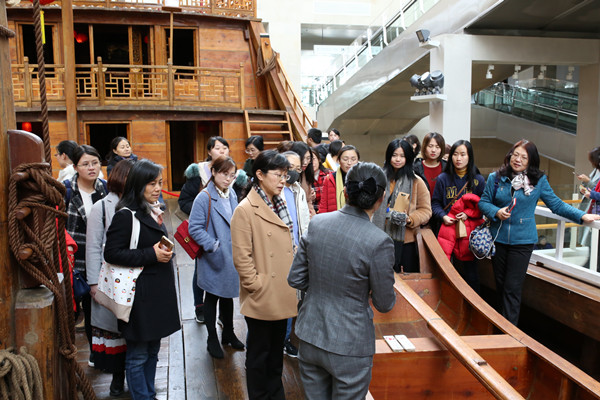 千川汇海阔,风好正扬帆。在中国航海博物馆,女教职工们徜徉在浩瀚的中国航海文化历史中,汲取丰富的精神营养。博物馆中陈列的文物和实物,展现出中国航海技术的发明与演变过程,大家驻足观看,学习交流,领略“海上丝绸之路”精神,体会中华民族灿烂的航海文明和优良传统。