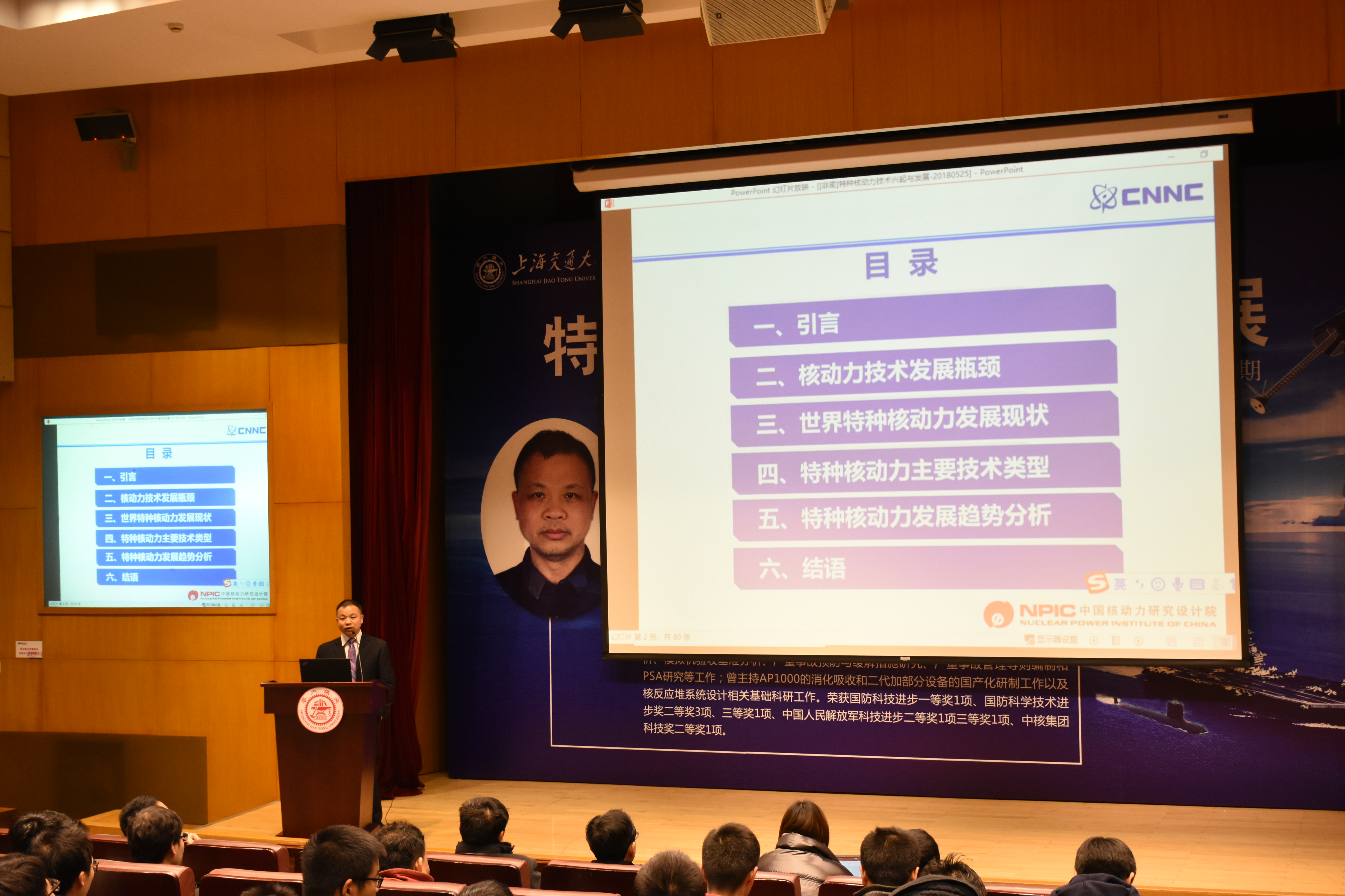 余红星所长从核动力技术的发展瓶颈、世界特种核动力的发展现状、特种核动力的主要技术类型和发展趋势四个方面做了深入浅出的介绍和讲解,在场听众对特种核动力的技术特点和发展趋势有了整体性的认识。
