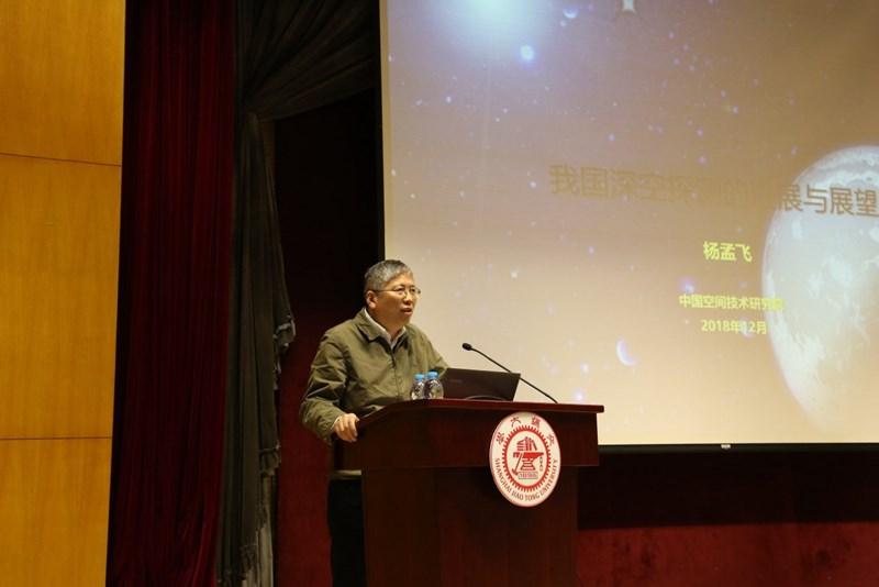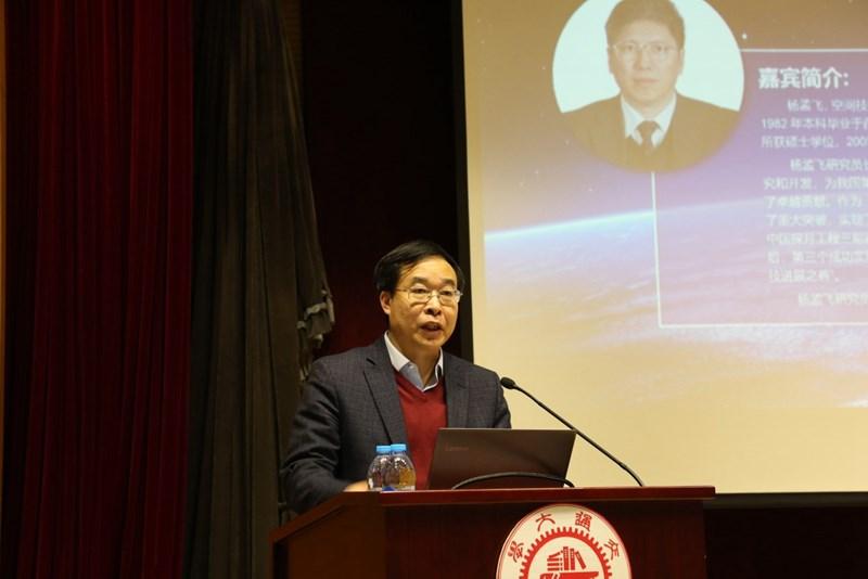 奚立峰代表公司对杨孟飞院士表示欢迎和感谢。他表示,交通大学有着悠久的为国家国防科技工业服务的历史和传统,培养了一大批国防领军人才,包括钱学森、王希季、龙乐豪等一大批杰出的航天领军人才,公司多项原创性科技成果在载人航天与探月工程等重大专项,以及“嫦娥”“神舟”“天宫”“玉兔”等航天型号装备上得到应用,为实现国家“航天强国梦”提供源源不断的人才和技术支撑。同时,他希望广大师生能够通过此次与杨院士零距离的交流,了解国内外航天领域发展的最前沿,指引自己未来学术和科研的方向。