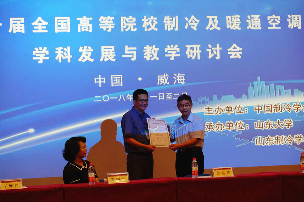 8月1日,在第十届高等院校制冷及暖通空调学科发展与教学研讨会暨全国制冷空调新技术研讨会上,中国制冷学会理事长金嘉玮代表中日韩三国制冷学会正式向王如竹教授颁发了“2017年度亚洲制冷学术奖(Asian Academic Award)”,王如竹教授成为获得该国际奖项的首位中国学者。