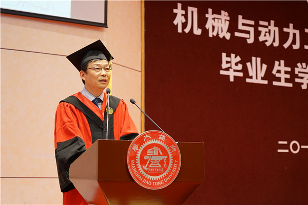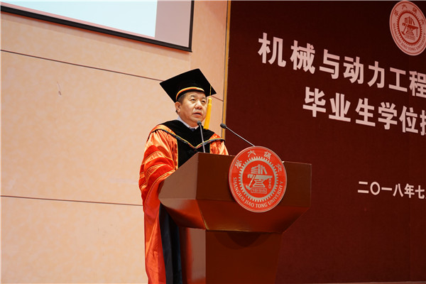 杜朝辉表示,2018届毕业生是“幸运的”,他们经历了首届工科试验班、致远工科荣誉计划;同时也是“亚历山大的”,从工程学导论项目展、项目制课程到毕业设计,他们用汗水交出了满意的答卷。杜朝辉指出,选择交大,就选择了责任;选择机动,就选择了使命。他引用习近平总书记“立鸿鹄志,做奋斗者;求真学问,练真本领;知行合一,做实干家”的铮铮话语,鼓励毕业生“以青春之我、奋斗之我,为民族复兴铺路架桥,为祖国建设添砖加瓦”。