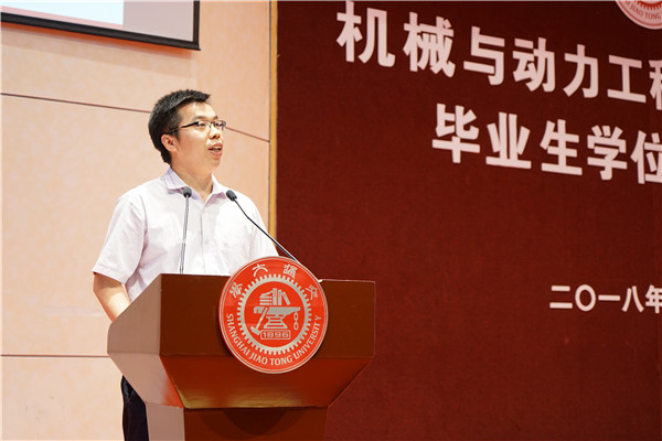 春风化雨,润物无声。2018届毕业生班主任代表、第二届钱学森班班主任彭志科回忆了与同学们相处的时光,朴实的言语中道出了珍贵的师生情谊。他围绕钱学森之问,鼓励同学们永葆交大初心,用“乘风破浪会有时,直挂云帆济沧海”的豪情壮志,传承钱学森学长之精神,发扬优秀员工之传统,传承机动百年之荣光,为祖国发展贡献力量,为中华民族再创辉煌。