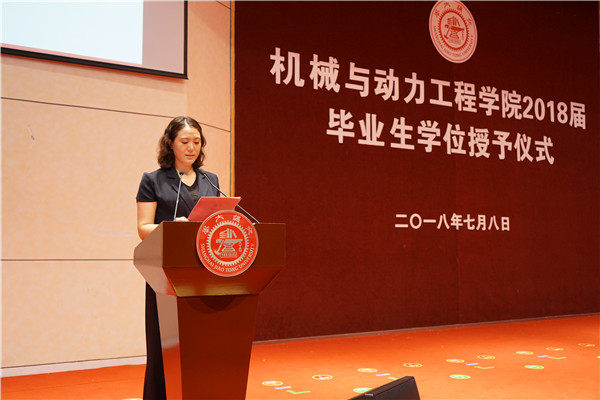 王丽伟依次宣读了“2018届荣誉学位毕业生名单”、“钱学森班毕业生名单”、“上海市优秀毕业生名单”和“伟德国际1946优秀毕业生名单”。