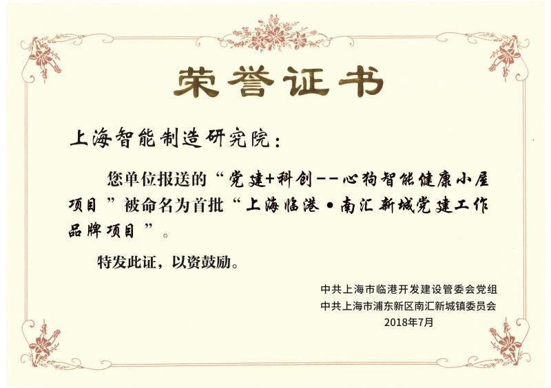 上海智能制造研究院“党建+科创—心狗智能健康小屋项目”项目荣获“上海临港•南汇新城党建工作品牌项目”