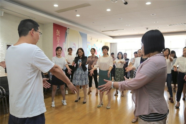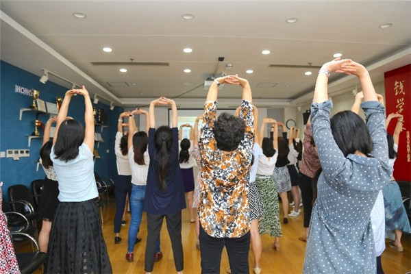 讲座最后,王会儒带领教师做肩周、颈椎以及脊柱等部位的动作练习,大家仔细聆听、认真操练,不仅了解了养生的基本要素,也学会了实用性日常锻炼的基本动作,纷纷表示应提高健康运动意识,注重日常养生方式,以更好的精神状态投入到工作中去。