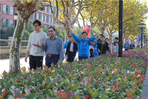 11月1日,为庆祝党的十九大全国代表大会胜利召开,伟德国际1946联合中英低碳公司举行“昂首迎接十九大•阔步迈向新征程”的校园健步走活动,近300名教职工参加了活动。