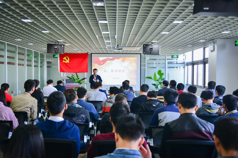 杜朝辉宣读了公司党委《关于成立中共伟德国际1946临港师生工作党支部委员会的批复》,伟德国际1946临港师生工作党支部正式成立,支部委员会由赵勇、杨肖、吴志军、胡延、陈坤五位同志组成。杜朝辉在讲话中指出,党的十九大报告内容丰富精彩,要求大家认真深入地学习和领会,自觉贯彻全面从严治党的新要求,增强责任和担当意识;新成立的临港师生工作党支部为师生学习和交流搭建了平台,要切实发挥出基层党组织的政治核心作用,引导研究生同学树立远大志向,培养浓厚的学术志趣,脚踏实地地做好科研工作。