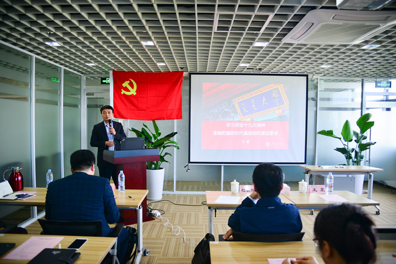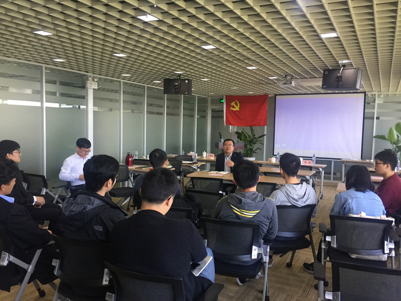王震以“学习领会十九大精神,准确把握新时代基层组织建设要求”为主题为师生上专题党课。他从自己成长与生活的切身体会,引出改革开放以来中国社会的伟大变革;以工业、制造业、创新科技、能源、交通等领域为例,阐述了过去五年来的历史性成就;从中国高铁讲到一带一路,从过去的“三步走”目标谈到新的“两步走”战略,教育全体党员要树立和坚持道路自信、理论自信、制度自信、文化自信。他还介绍了十九大报告中提到的社会主要矛盾的新变化,新时代的基本方略和工作要求,以及新时代党的建设总要求,希望员工党支部准确把握新时代基层组织建设的要求,员工党员胸怀天下,增加思考深度,不断提升自身素质和能力。