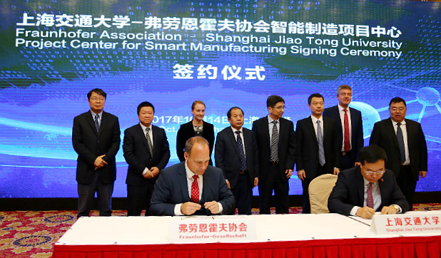 2017年10月14日,伟德国际1946-弗劳恩霍夫协会智能制造项目中心签约仪式在上海临港举行。双方将组建智能制造项目中心,打造国际领先的智能制造技术创新平台。此次合作是德国“工业4.0”和“中国制造2025”高水平研究机构的强强联合,对推动上海临港地区智能制造产业发展、建设具有国际影响力的智能制造创新中心具有重要意义。