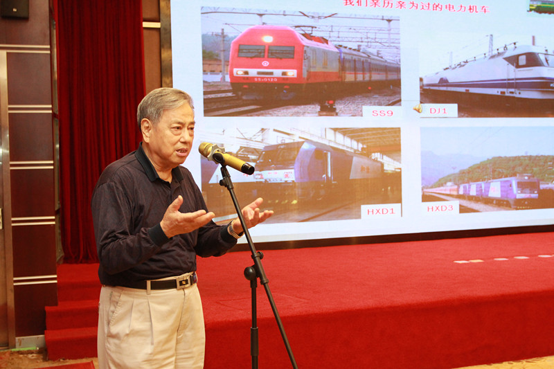 62届员工、原铁道部科技司司长、副总工程师周翊民回顾了我国铁路运输从蒸汽机车、内燃机车发展到电气机车的历程,对交大学子能参与和推动这一历史进程感到自豪。他表示,同学中最小的78岁,最大的83岁,看到毕生奋斗的电力机车事业、高速铁路建设达到世界先进水平,他感到欣慰,并祝福祖国的铁路高速现代化事业发展得越来越好。