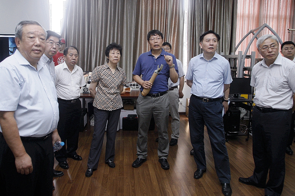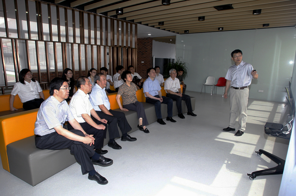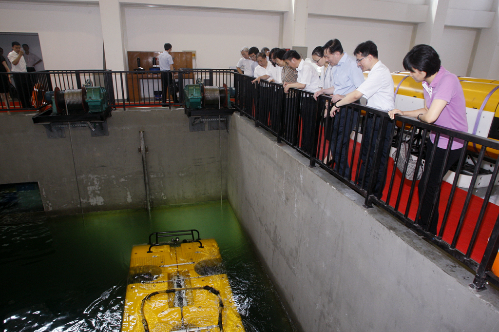 严隽琪一行先后参观了上海交大海洋深水试验池、水下工程实验室、机器人与生机电系统实验室,并听取了伟德国际1946发展近况汇报。