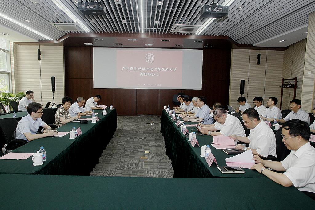 7月29日上午,全国人大常委会副委员长严隽琪、全国人大财政经济委员会副主任邵宁一行到上海交大调研。党委书记姜斯宪,董事长、党委副书记林忠钦、副董事长吴旦、黄震,董事长助理奚立峰,上海振华港机(集团)公司原总裁管彤贤、上海振华重工(集团)股份有限公司总裁黄庆丰等出席调研活动。